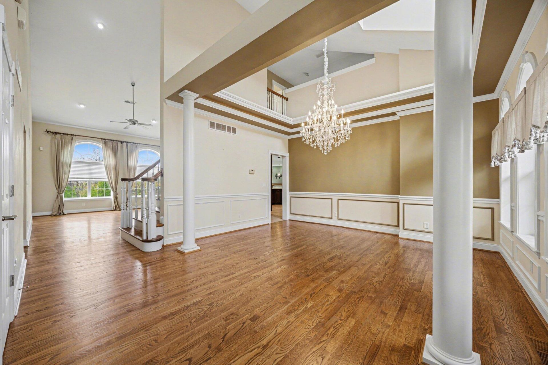 Welcome to this custom-built home in the desirable Triple Crown Country Club, where comfort and elegance meet on a beautiful 1-acre lot. This full-brick residence features a spacious primary suite on the first floor. Enjoy outdoor living at its finest with a brand-new deck overlooking a scenic pond, complete with a charming fire pit area--perfect for relaxing evenings or entertaining guests.Inside, the home boasts a fully finished walkout basement with impressive 9.5-foot ceilings and a stylish bar, creating an ideal space for gatherings. The gourmet kitchen is designed for both everyday living and entertaining, featuring high-end finishes and custom built-ins that add functionality and timeless appeal. This exceptional property blends luxury, space, and serene surroundings--truly a place to call home.