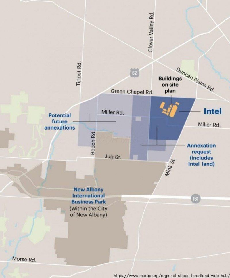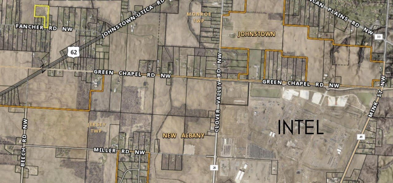This exceptional property in Monroe Township is ideally located just half a mile from Highway 62 and three miles from Intel, in the heart of the Silicon Heartland with major companies like Facebook, Google, and Amazon nearby. Key features include potential for commercial development in the NAC red zone, with city water and sewer services anticipated as the City of Columbus plans expansions. Natural gas is available at the road. Enjoy quick access to the 161 freeway, with four major interchanges nearby. Additional neighboring properties are available for further development opportunities.