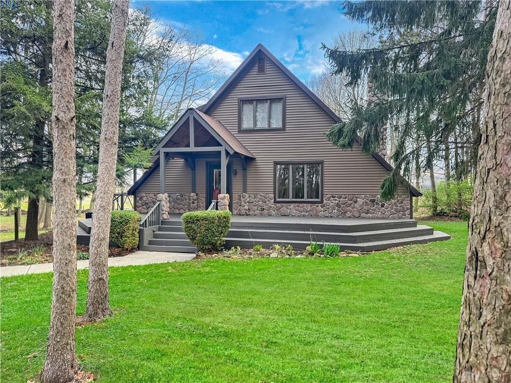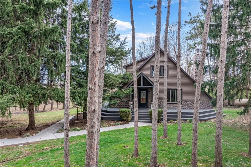 Tucked away on 4+ beautifully wooded acres just minutes outside Urbana, this completely secluded property offers the perfect balance of privacy and convenience. A long driveway leads you deep into the trees, where glimpses of surrounding farmland peek through small clearings, creating a peaceful and picturesque setting. Once inside the wooded retreat, a circular drive welcomes you home, guiding you to both the residence, a 2-car detached garage, along with a 24x12 outbuilding, that with a little vision, could serve a variety of uses. With over 3,300 square feet of living space, including 1,882 square feet above grade and an additional 1,456 square feet in the walkout lower level, this home offers room to live, relax, and entertain. Expansive windows throughout the home invite natural light in and showcase the surrounding beauty of nature. Step outside to enjoy more than 1,100 square feet of decking, including 252 square feet of covered space, providing the perfect setting for outdoor gatherings or quiet mornings immersed in the sights and sounds of the woods. Inside, the main level features a spacious owner's suite, along with a warm and inviting living room highlighted by a fieldstone, wood-burning fireplace with blower, that opens into the kitchen and breakfast area. The kitchen comes fully equipped with stainless steel appliances, including a range, refrigerator, microwave, and dishwasher. An oversized family room and dining room combination offers flexible living and entertaining space. Upstairs, you'll find two additional bedrooms and a full bath, while the walkout, lower level expands your options even further with a potential fourth bedroom, multiple recreational areas, a bar set up, and a pool table that stays with the home. Recent updates include front roof (2023), back roof (2019), siding (2023), water heater (2018), and pressure tank (2020). If you've been searching for a private, nature-filled retreat without sacrificing proximity to everyday amenities.