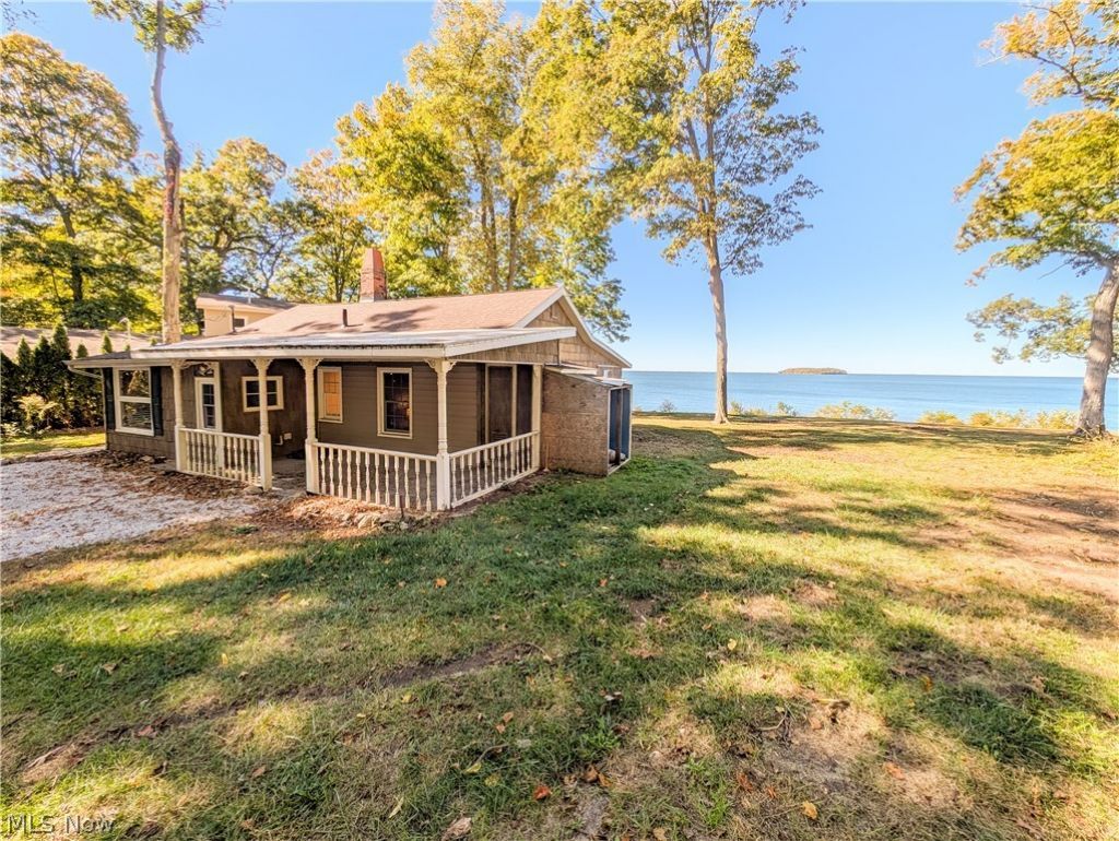 Rare waterfront opportunity in Stone Cove on South Bass Island! Situated on over 2 wooded acres, this property offers unobstructed views of Green Island and scenic Victory Cove. Charming, low-maintenance cottage featuring luxury vinyl shake siding, Pella windows, fieldstone wood-burning fireplace, and recent updates including luxury vinyl flooring, kitchen, and bath. Property includes a 2.5-car garage plus two detached executive barns with oversized doors ideal for motorhome, boat, or collector car storage. Barns offer excellent potential for guest quarters, home office, or additional living space. Natural setting with room to expand. Enjoy spectacular sunsets and the best of island living at Put- In-Bay!