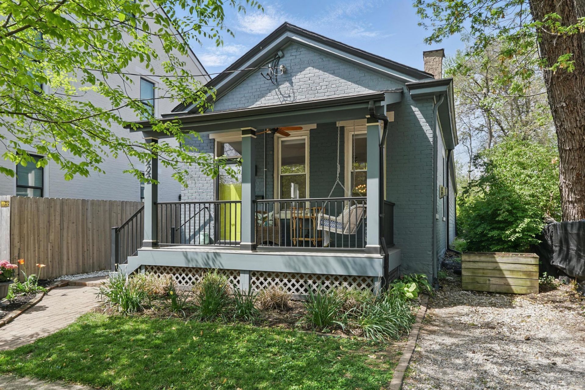 Charming Cottage-Craftsman in the Heart of Covington at Seminary Square, a short walk to Mainstrasse! Discover this perfectly situated, beautifully maintained, 2-bedroom, 1-bath home, featuring hardwood floors, a contemporary Gas Fireplace, a lovely front porch and off-street parking! The eat-in kitchen is thoughtfully updated s/s appliances! The spacious master bedroom offers direct access to a private patio, creating a seamless extension of your living space. The outdoor area is enhanced by a modern shed, perfect for use as a home office or an entertaining retreat with friends and family. First Floor Laundry, New Water Heater, Updates throughout!