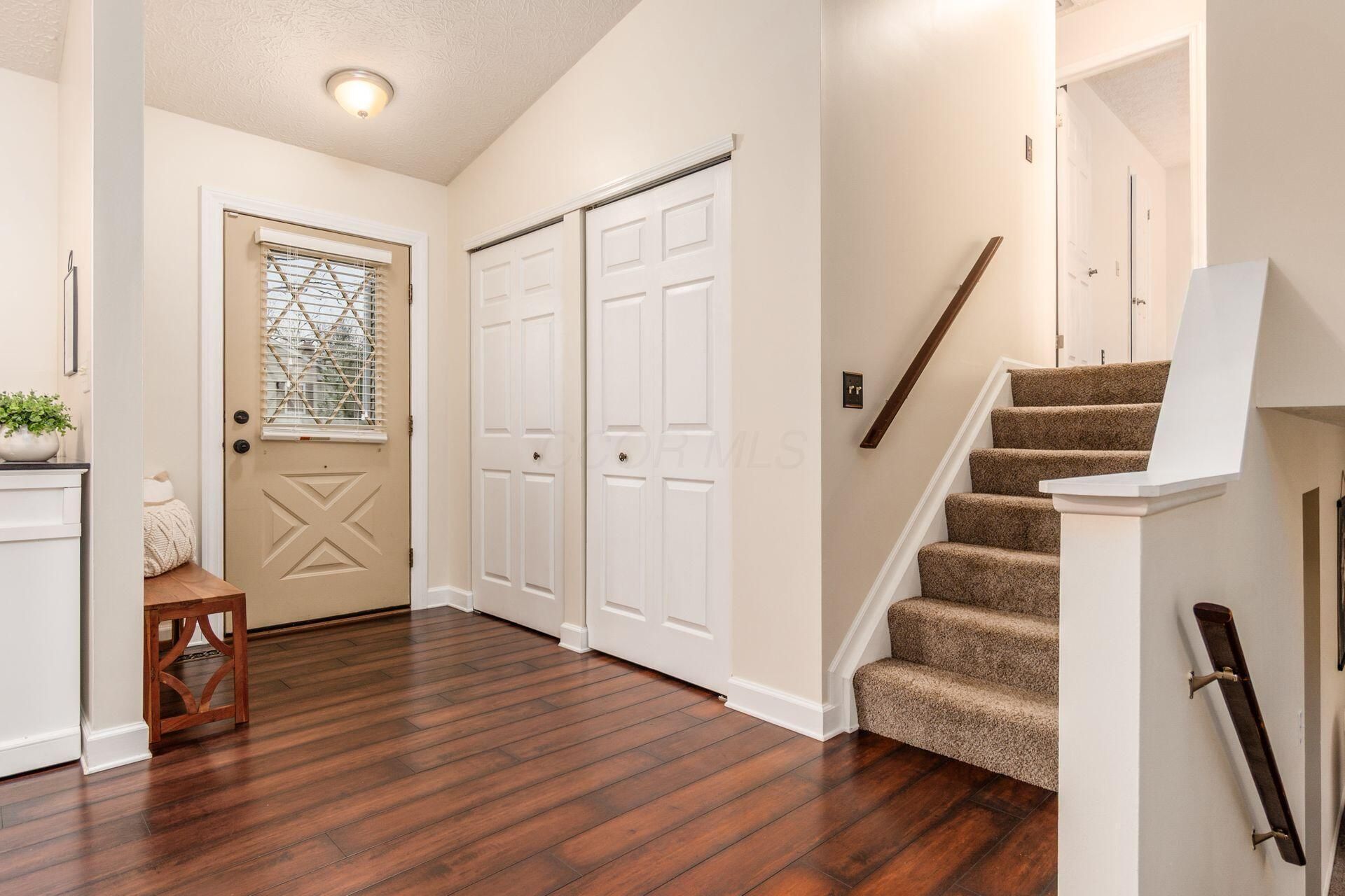 Tucked away in the desirable Golfview Woods, this inviting home offers a blend of comfort, convenience, and everyday functionality. Ideally positioned with easy access to Quarry Trails Metro Park and Raymond Memorial Golf Course, the location balances a quiet setting with close proximity to Hilliard schools, OSU and downtown.The main living area features soaring ceilings and an open feel, flowing seamlessly to a patio overlooking the fenced backyard. The kitchen is designed with a thoughtful layout, offering ample storage, a pantry, stainless steel appliances, eat-in area and a vaulted ceiling that enhance the space. The family room provides a cozy retreat with a wood-burning fireplace, perfect for a TV area while the lower level offers a laundry area (washer/dryer can stay), along with generous storage and potential for future finishing.The bedrooms include closet built-ins, while the primary suite offers an en suite bath. Outdoor space includes a spacious backyard, storage shed, and an extended patio that connects to a paver fireplace area, ideal for everyday enjoyment.A smart choice for both homeowners and investors alike, offering comfort, flexibility, and long-term value in an unbeatable setting.