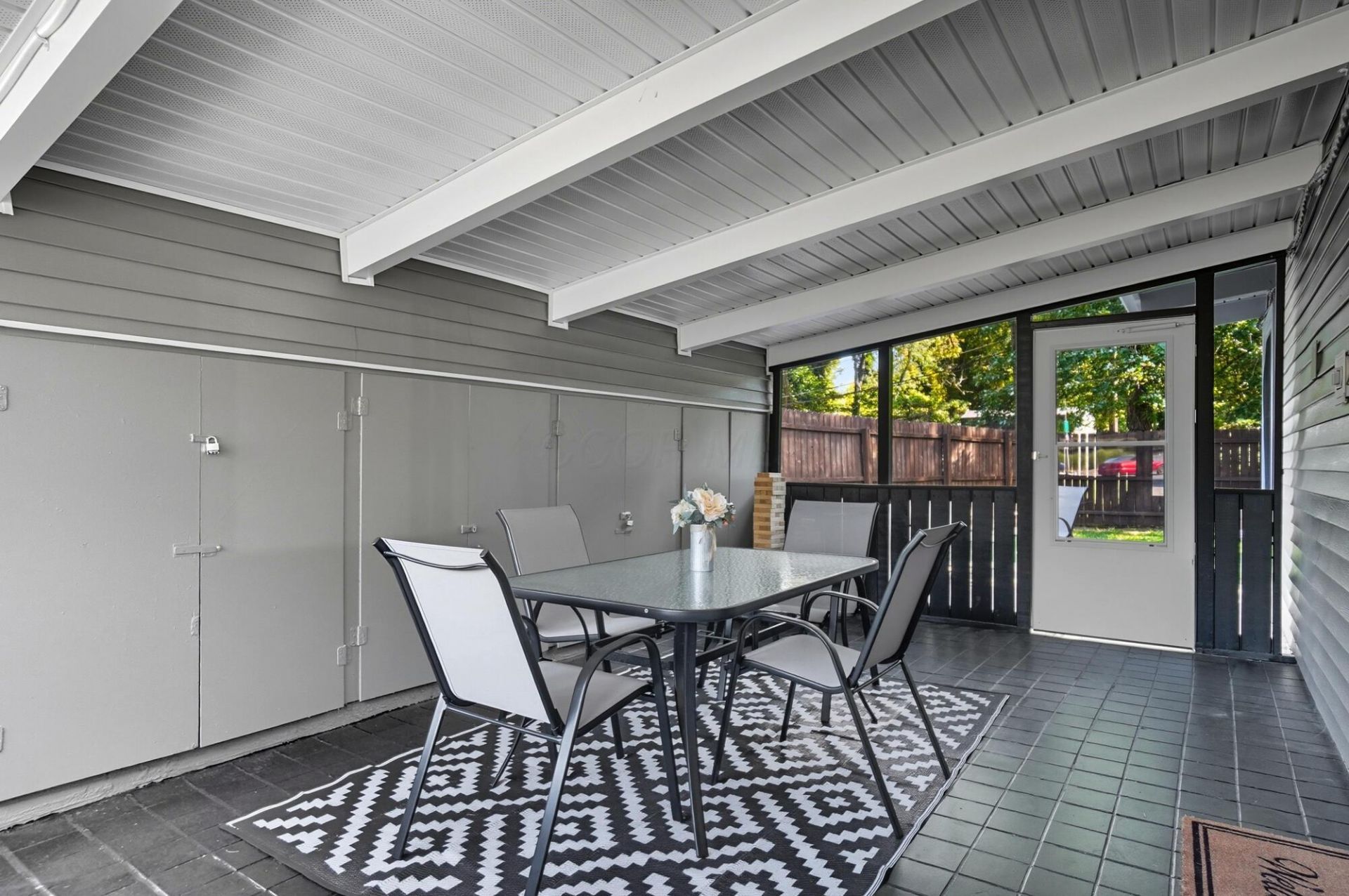 Prepare to be impressed. This reimagined 2-bedroom, 2-full bath ranch has been updated from the arrival to the back fence. The open interior features soaring ceilings, bold architectural beams, and new LVP flooring. The chef's kitchen offers granite countertops and a brand-new stainless appliance suite.Experience a dual-retreat lifestyle: an opulent primary suite with a custom floor-to-ceiling tile spa-bath, plus a private, wooded backyard sanctuary. Enjoy a freshly screened 3-seasons room and a fully fenced yard with a rock garden and storage shed.All appliances convey, including the new washer and dryer. Significant upgrades include a high-intensity UV air disinfection system and grounded electrical. Purchase includes a home warranty for total peace of mind. Minutes from Easton and downtown. Turn-key and ready for you. Agent Owned.