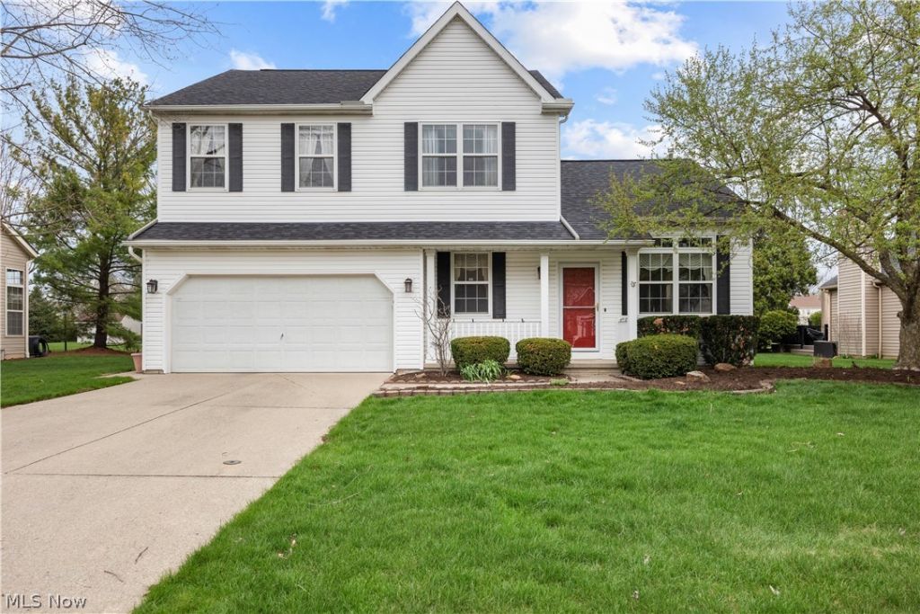 Welcome to this nicely maintained 4-bedroom, 2.5-bath Colonial in the highly desirable Villages of Lakeside community! From the moment you step inside, you'll appreciate the beautiful cherry laminate flooring flowing throughout most of the first floor. The soaring vaulted ceilings in the living and dining rooms create an open, airy feel, enhanced by abundant natural light. The kitchen offers ample cabinet space and a convenient movable island, perfect for everyday living and entertaining. Just beyond, the inviting family room features a cozy fireplace?ideal for relaxing evenings at home. Step outside to enjoy the spacious backyard with serene green space and a deck that's perfect for outdoor gatherings. Upstairs, you'll find all four bedrooms, including a generous primary suite with a skylit ensuite bath and double vanity. Both full bathrooms are designed with dual sinks for added convenience. The basement provides excellent storage along with a dedicated workspace featuring a built-in workbench. An added update includes a new roof (December 2025), offering peace of mind for years to come. Residents of the Villages of Lakeside enjoy access to a number of community amenities, including a pool, tennis/pickleball courts, and a pavilion. Conveniently located near the Olmsted Falls schools as well as nearby shopping and dining and access to I-480. Don't miss this opportunity?schedule your private showing today!